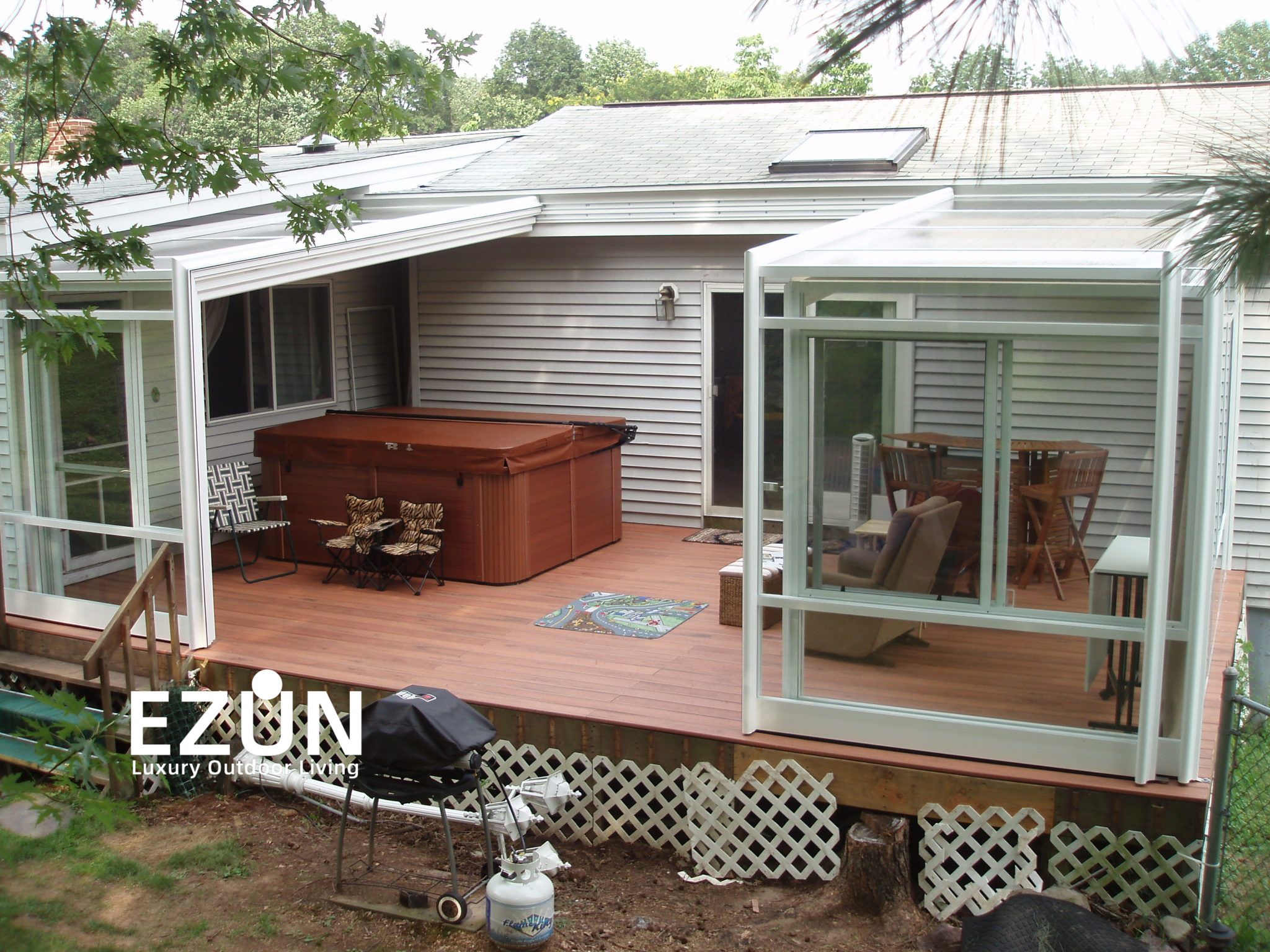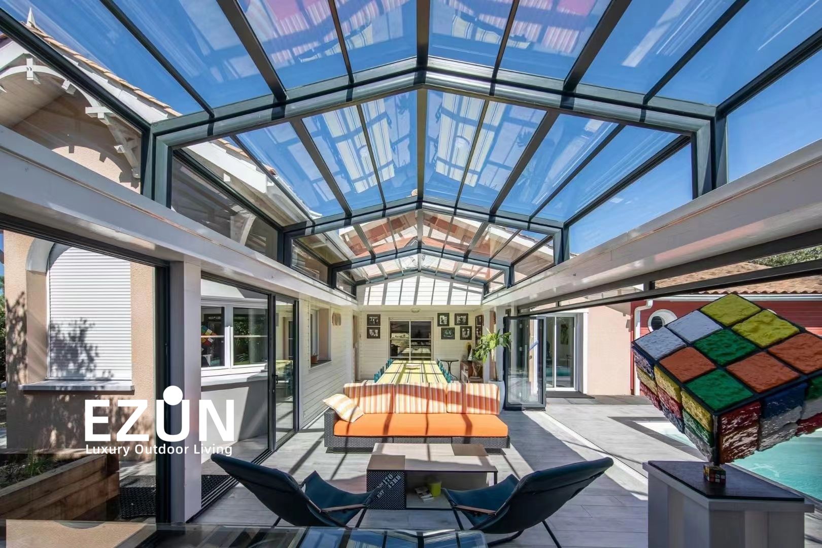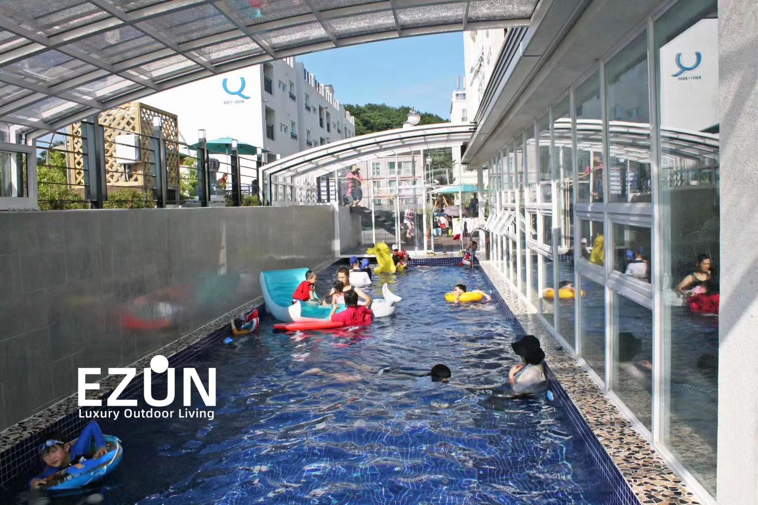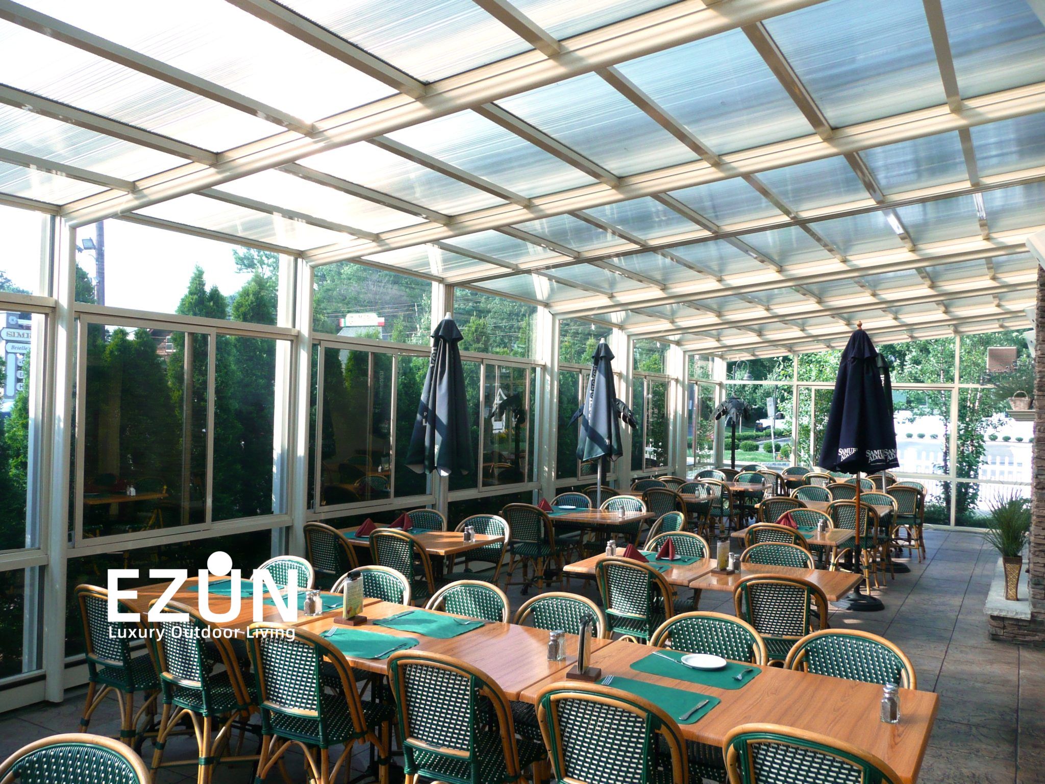 易尊移动阳光房框架模块化滑轨设计,内置安装电机,能够通过电动遥控随意控制阳光房的开合,自动伸缩,灵活调节阳光板的覆盖面积。选用铝合金6061-T6系列,硬度系数13以上,面板可选用夹胶玻璃或聚碳酸酯板材。可以从规格,款式,色彩提供多种方案。并根据需求和场地进行优化设计。为您定制专属产品。