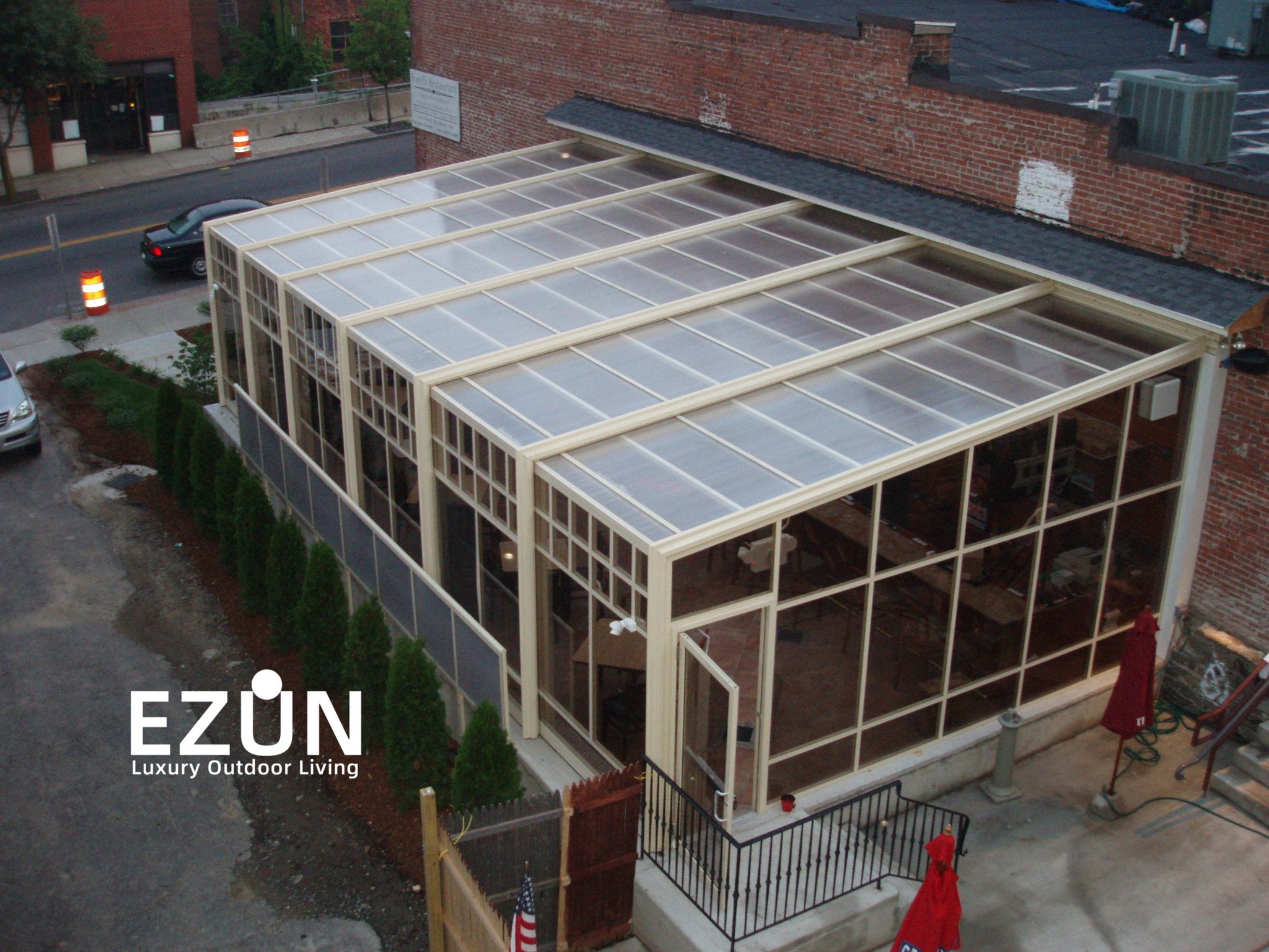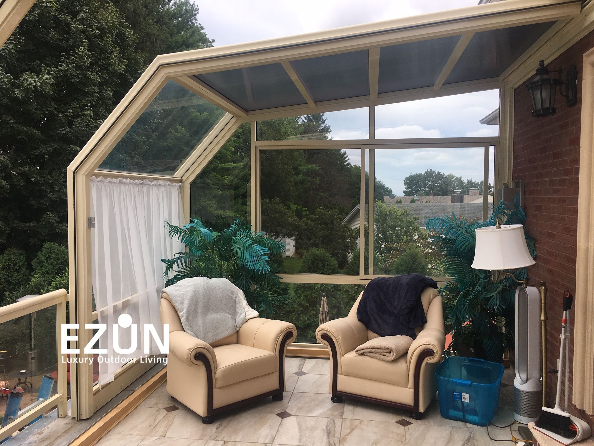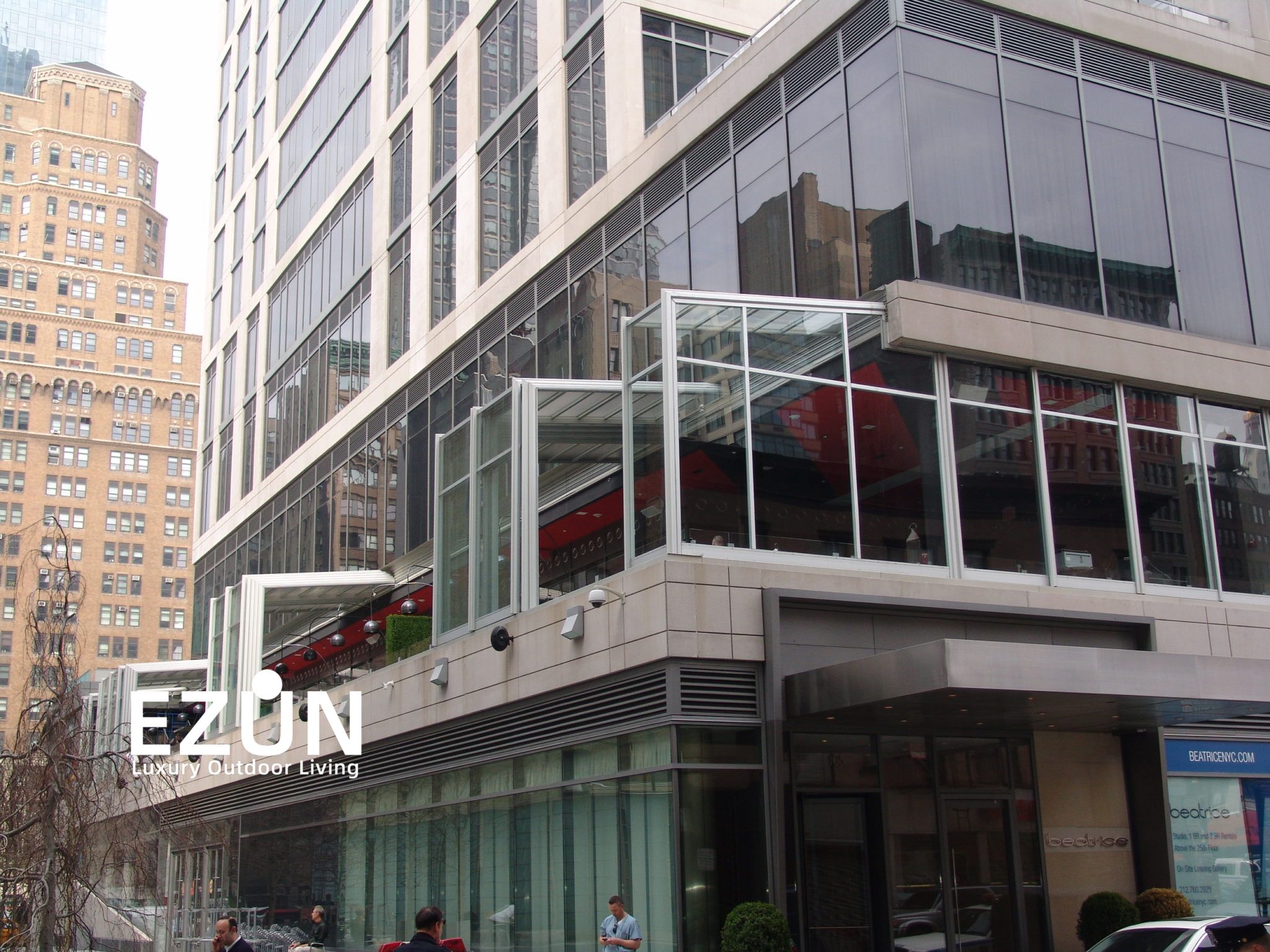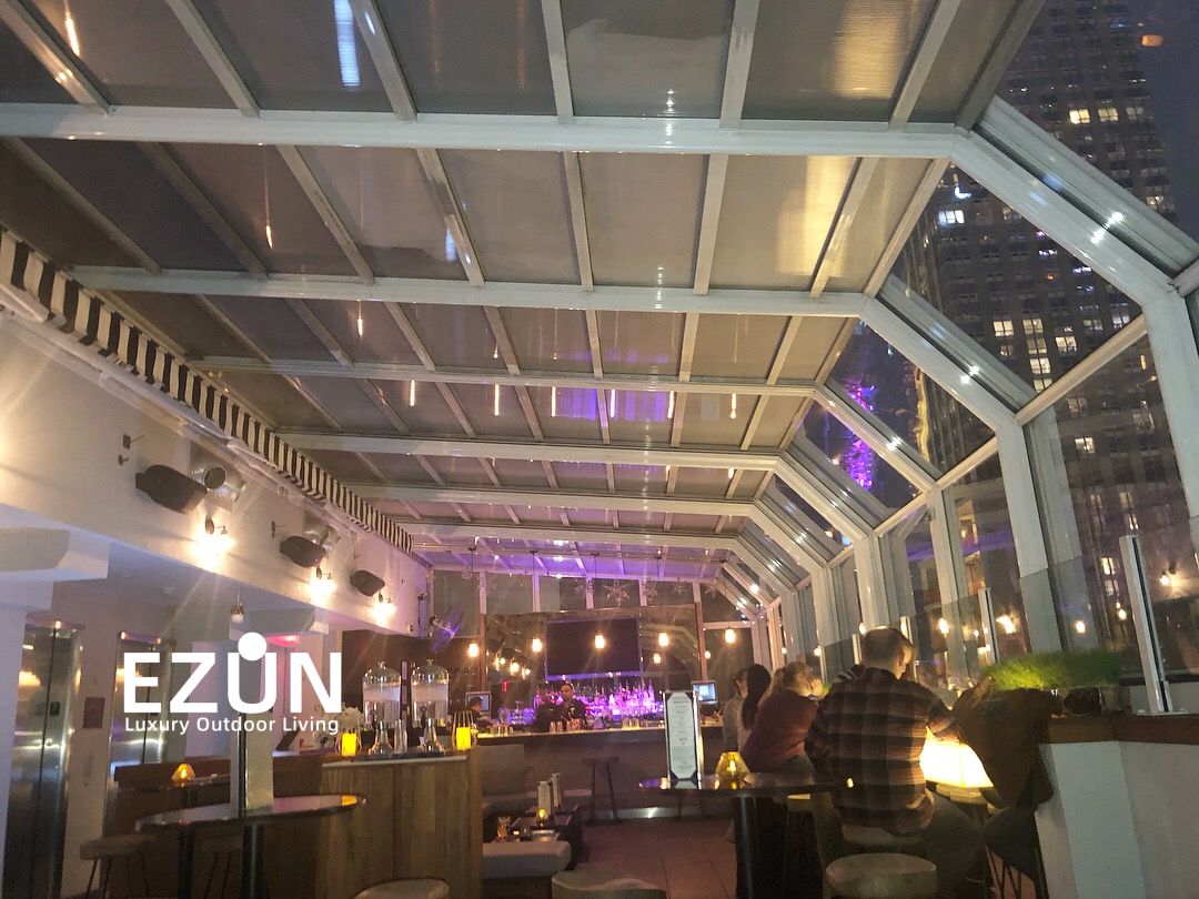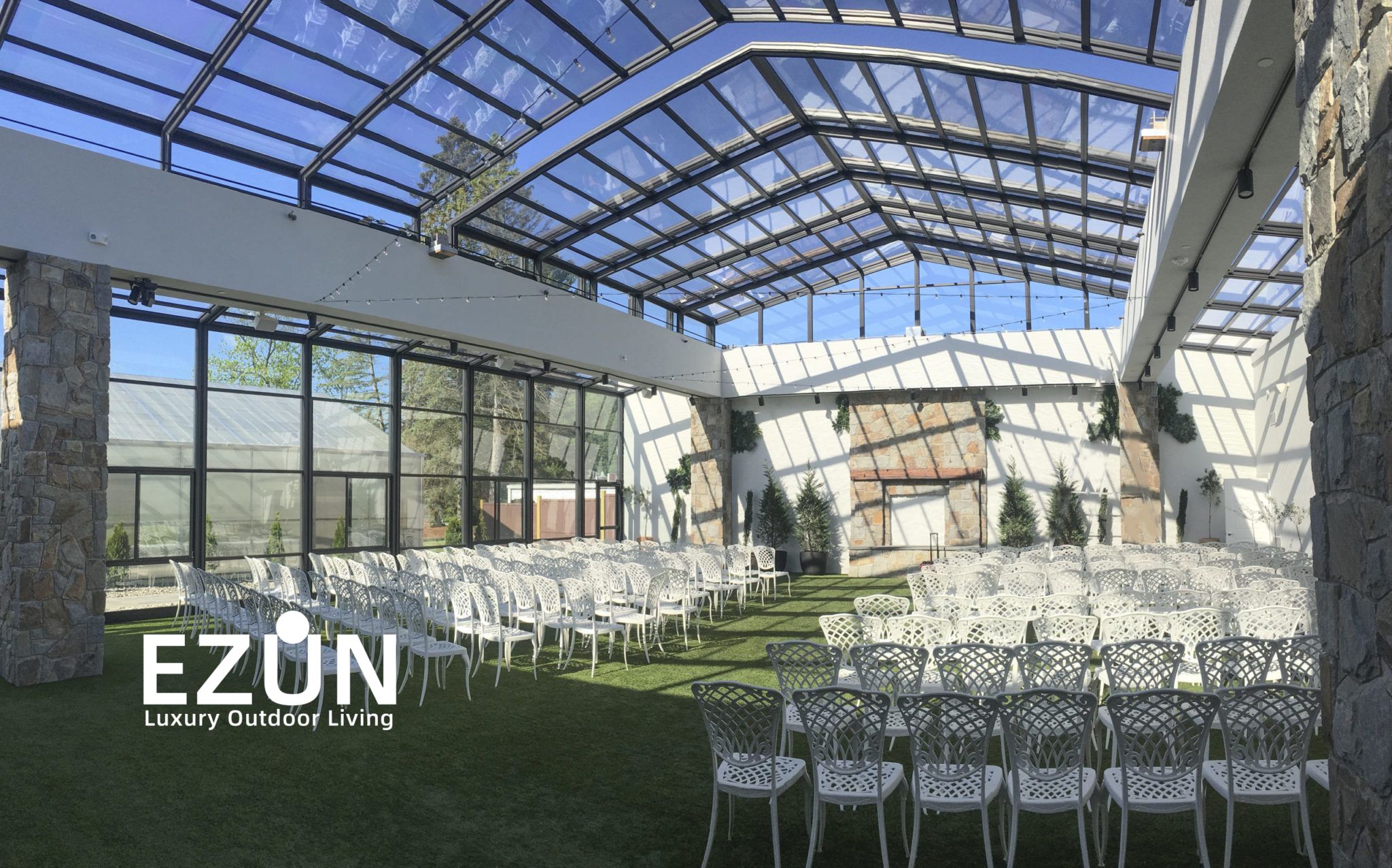 易尊移动阳光房框架模块化滑轨设计,内置安装电机,能够通过电动遥控随意控制阳光房的开合,自动伸缩,灵活调节阳光板的覆盖面积。选用铝合金6061-T6系列,硬度系数13以上,面板可选用夹胶玻璃或聚碳酸酯板材。可以从规格,款式,色彩提供多种方案。并根据需求和场地进行优化设计。为您定制专属产品。