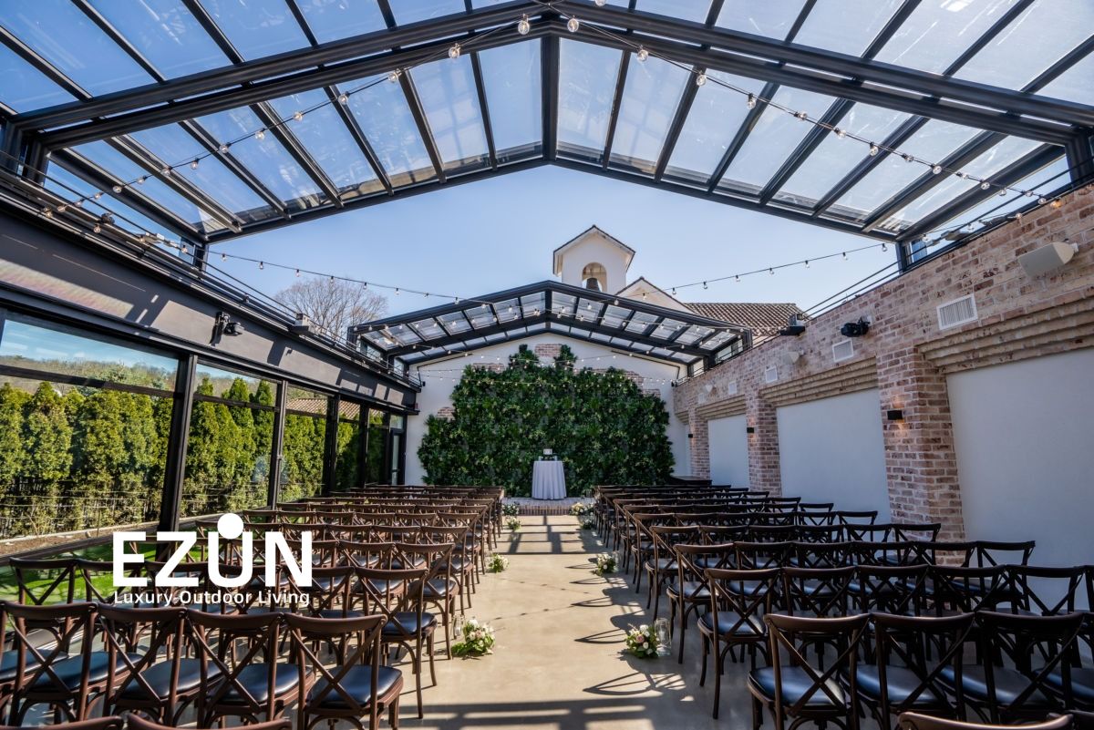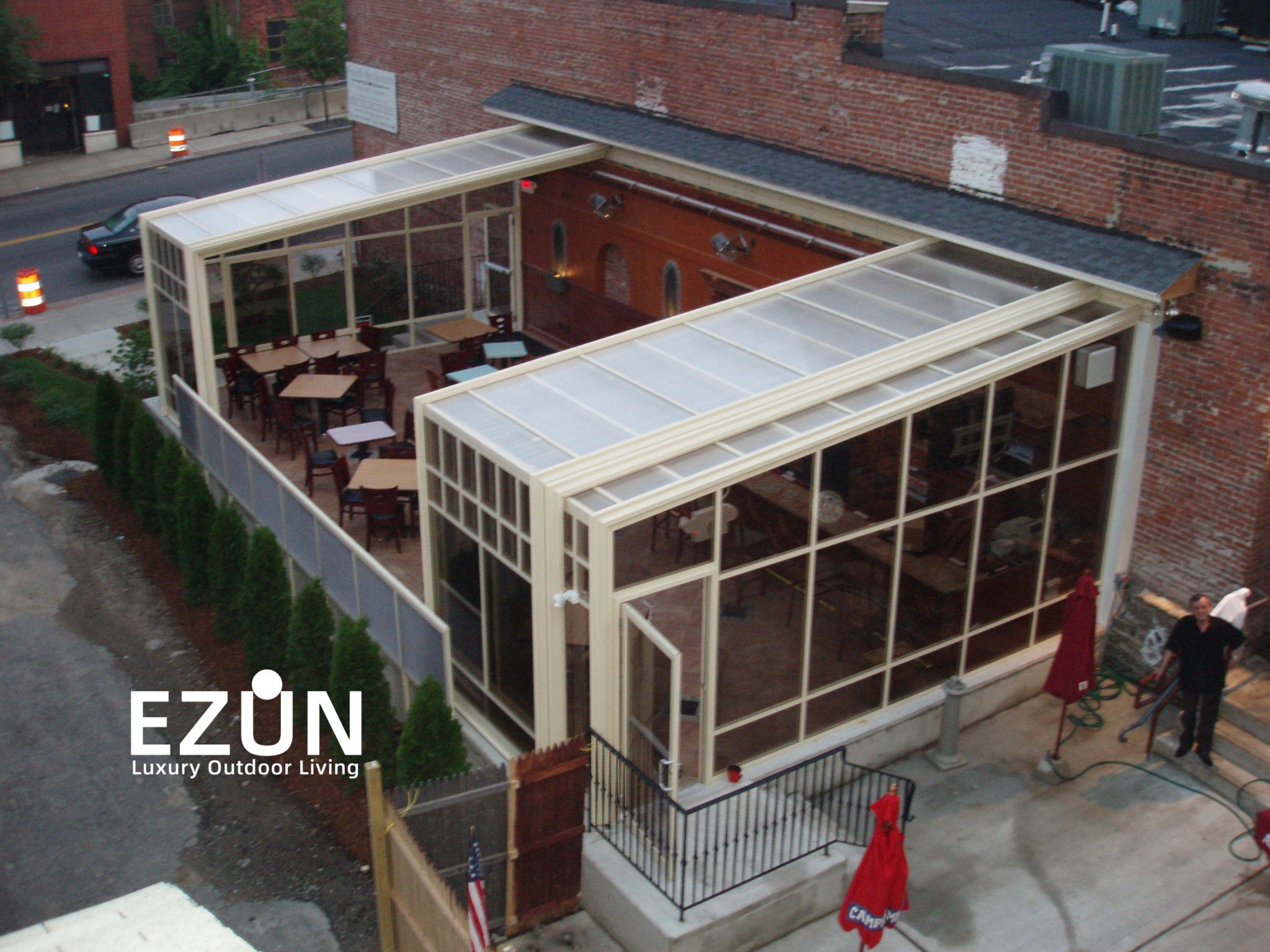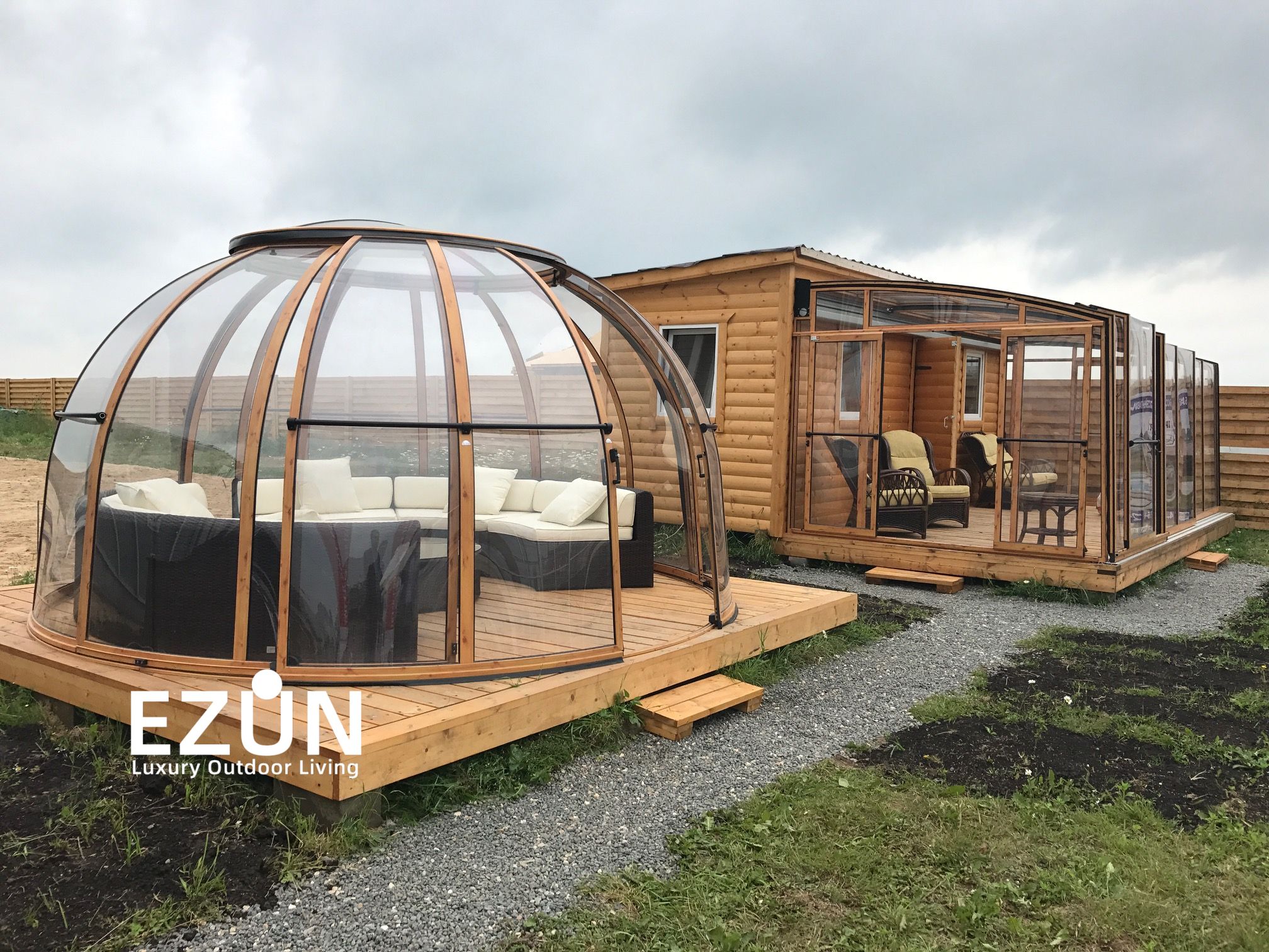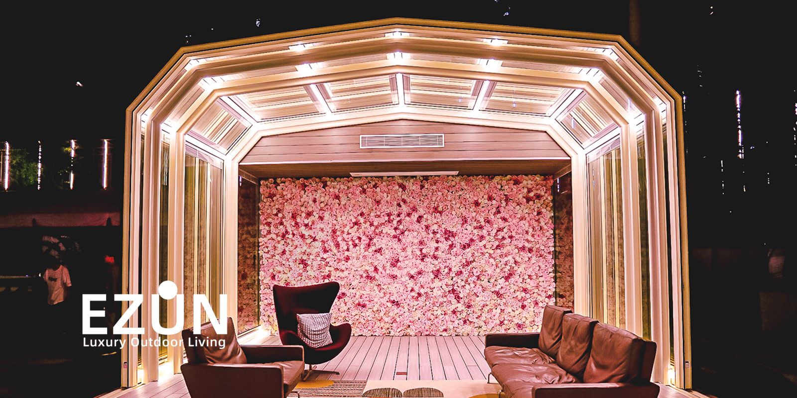 易尊移动阳光房框架模块化滑轨设计,内置安装电机,能够通过电动遥控随意控制阳光房的开合,自动伸缩,灵活调节阳光板的覆盖面积。选用铝合金6061-T6系列,硬度系数13以上,面板可选用夹胶玻璃或聚碳酸酯板材。可以从规格,款式,色彩提供多种方案。并根据需求和场地进行优化设计。为您定制专属产品。