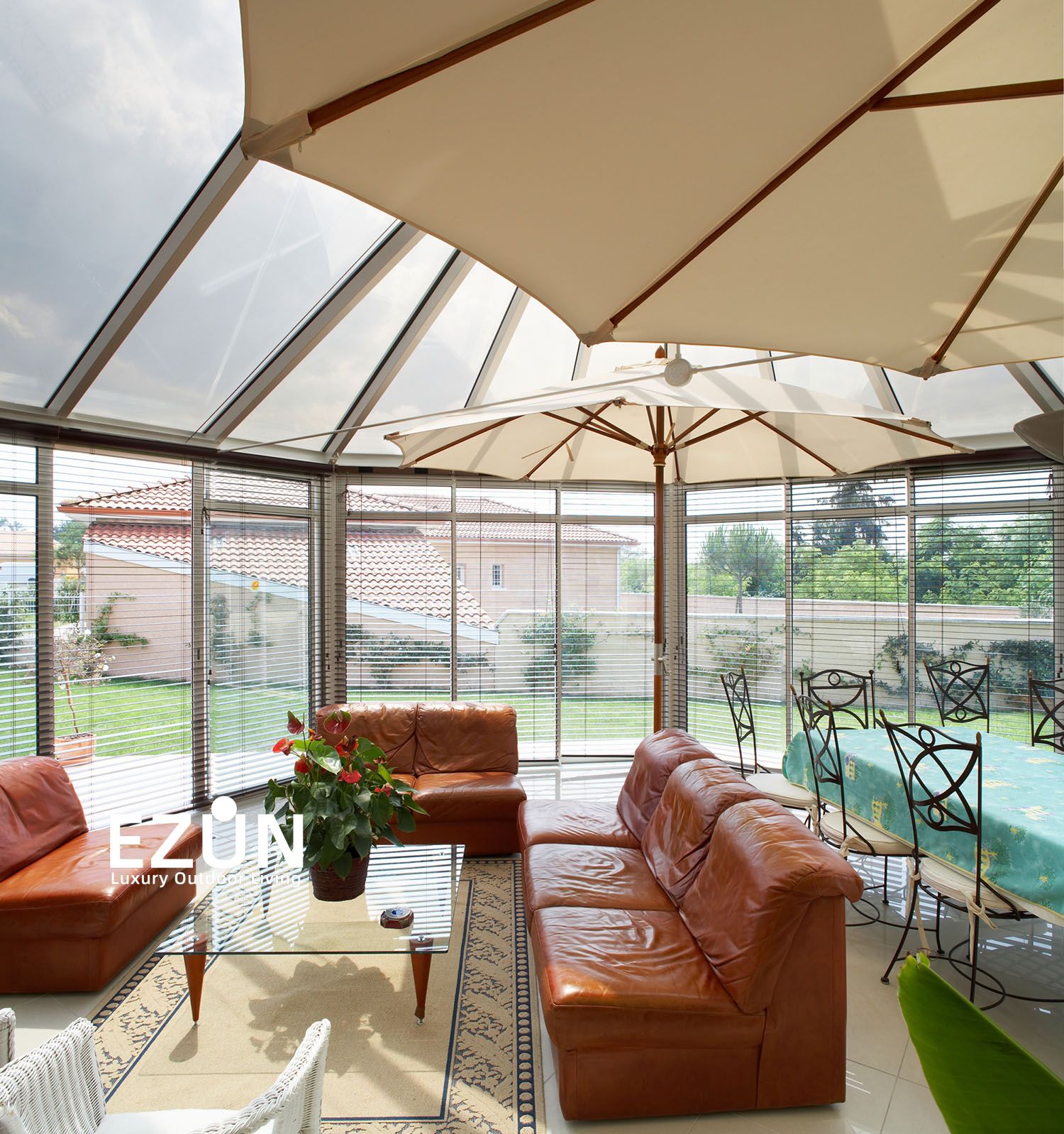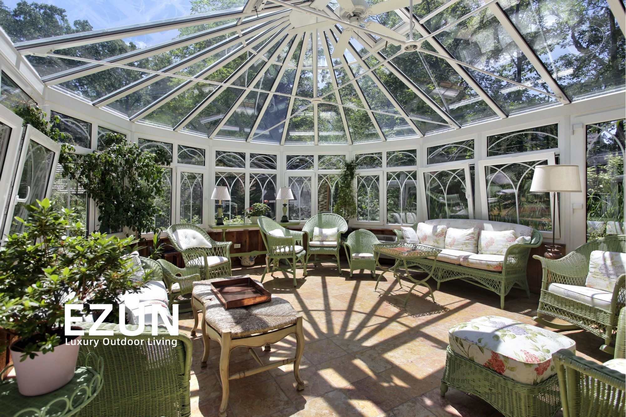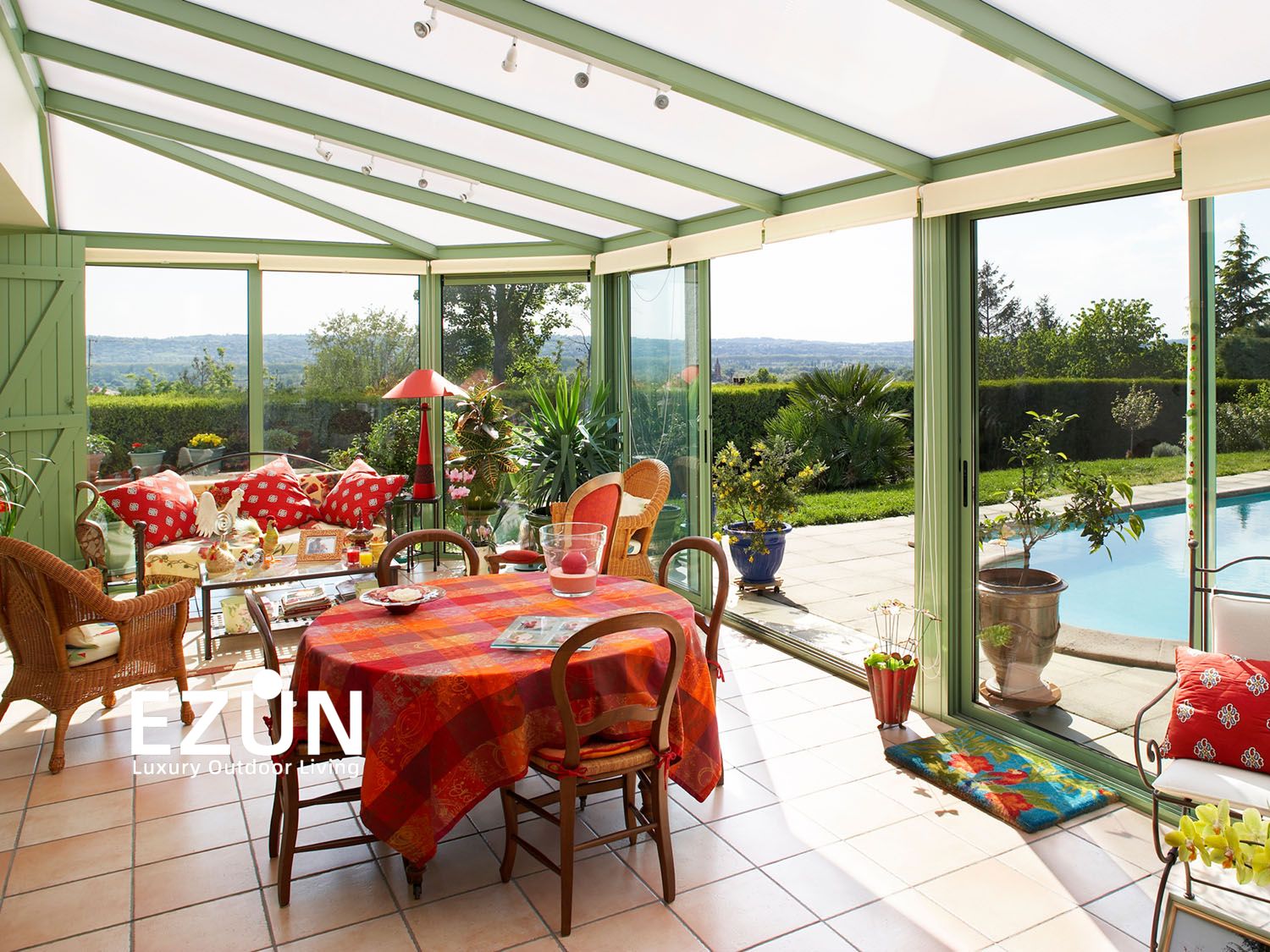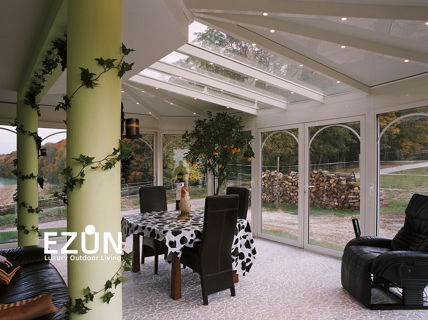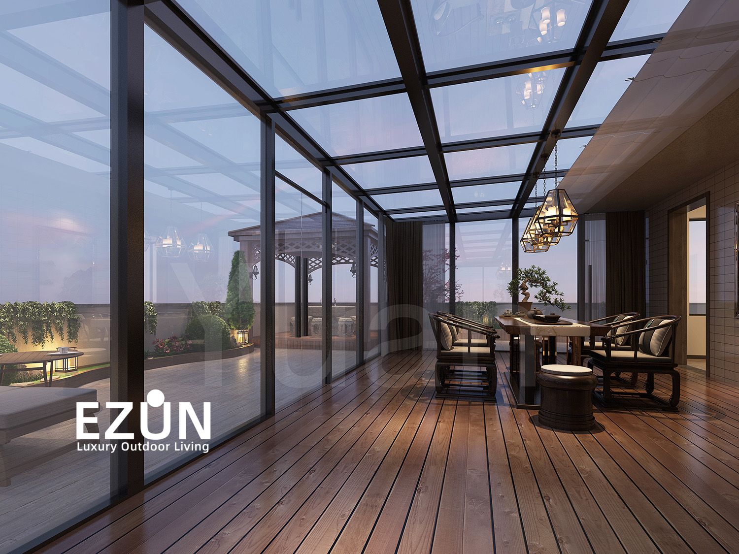 易尊阳光房采用玻璃与金属框架搭建的全明非传统建筑,以达到享受阳光,亲近自然的目的。