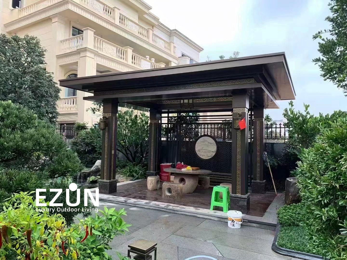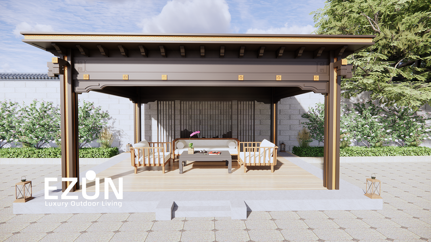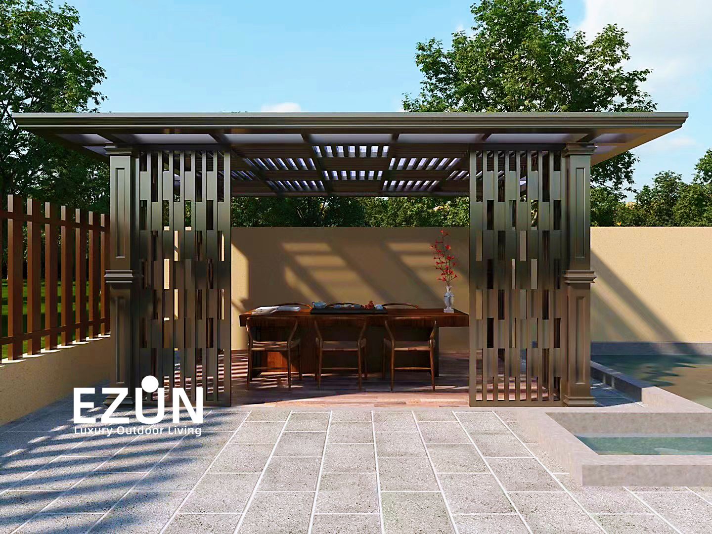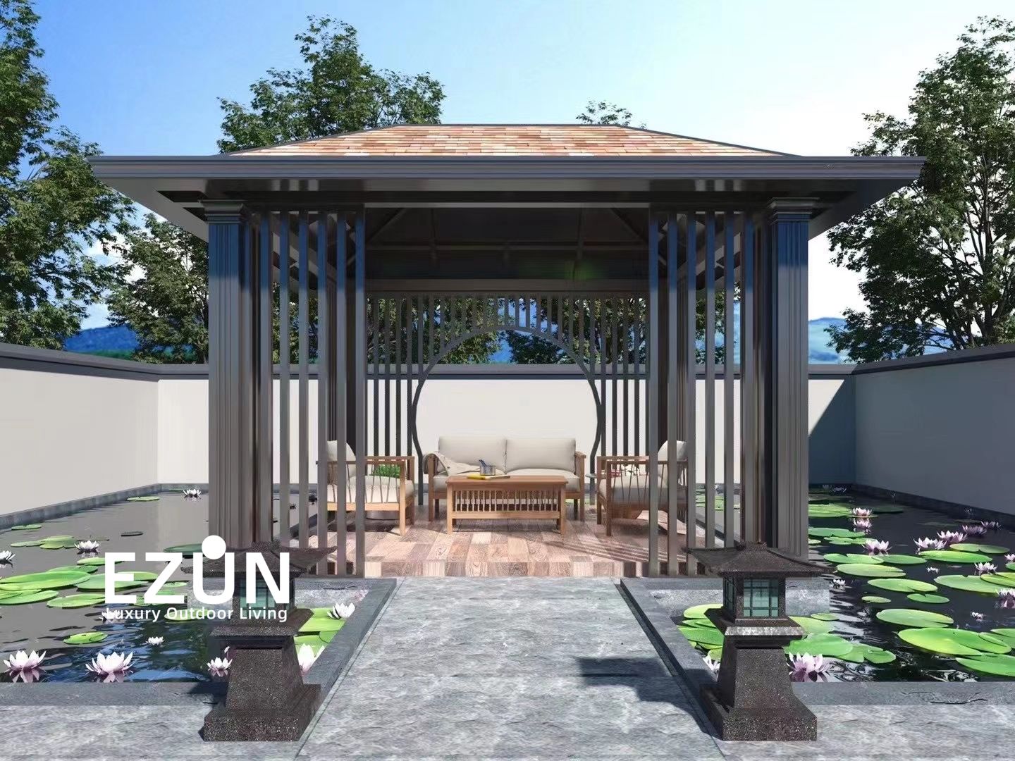 易尊新中式凉亭是目前较为受欢迎的一款产品,全面利用了铝合金材质的优势,保留了传统凉亭的美感外观,而规避了传统木质凉亭的缺憾。能做到不腐烂,不开裂,不褪色,不刷漆等优点。并符合国家环保要求。