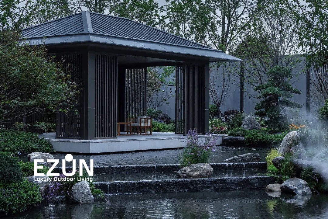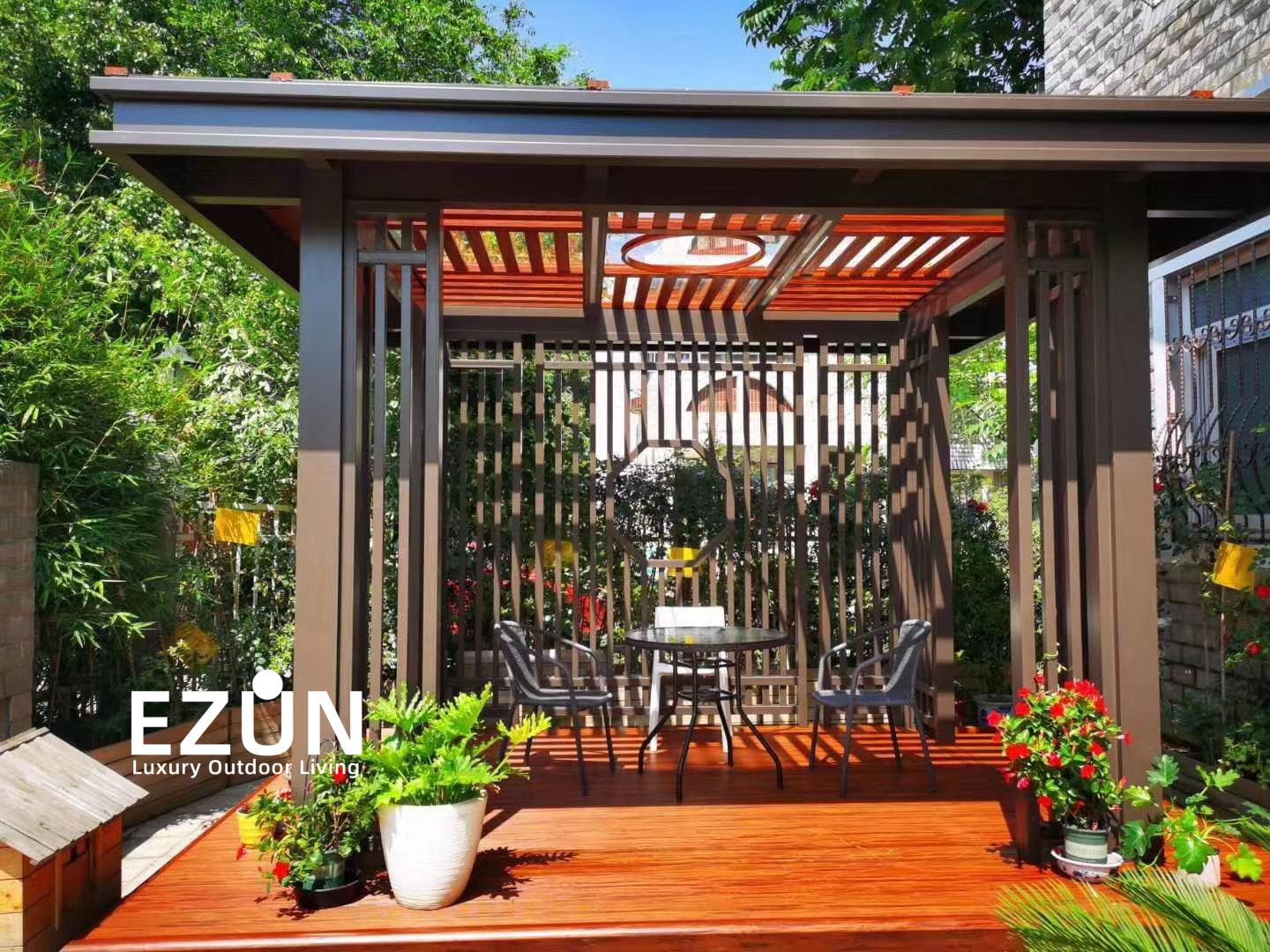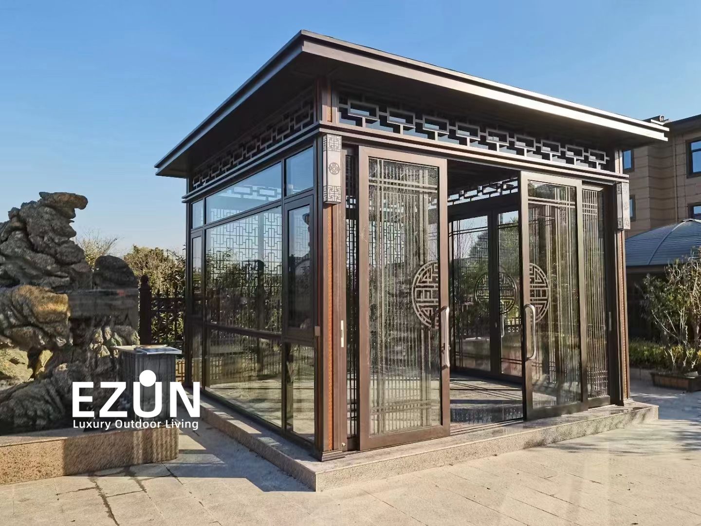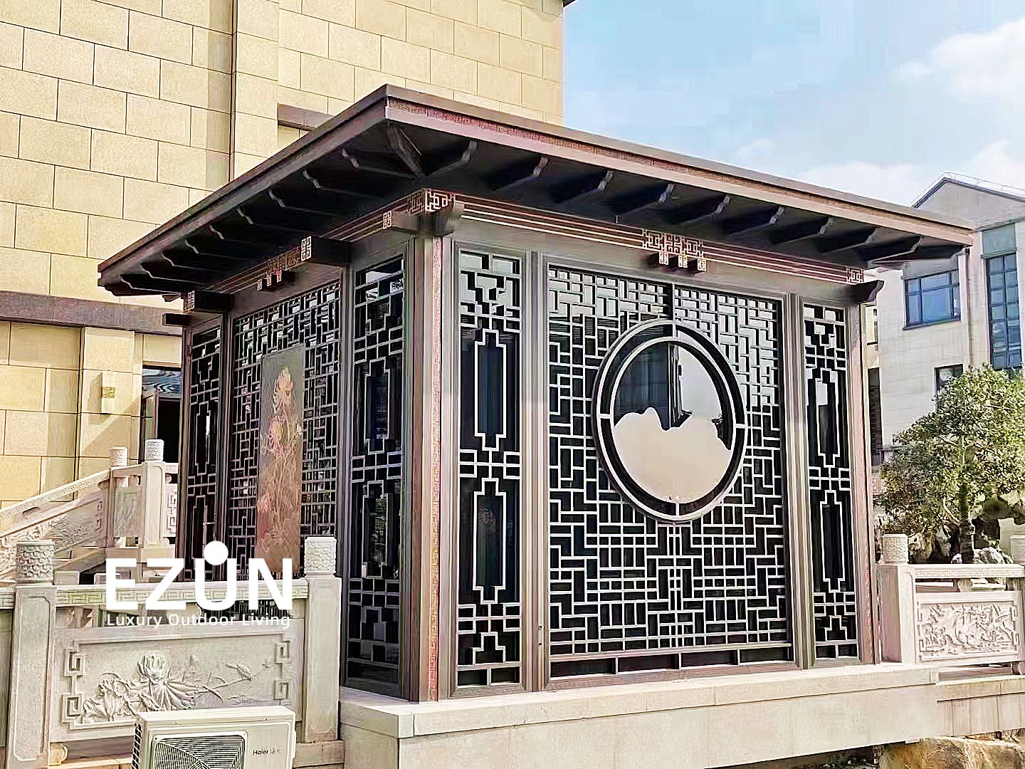 易尊新中式凉亭是目前较为受欢迎的一款产品,全面利用了铝合金材质的优势,保留了传统凉亭的美感外观,而规避了传统木质凉亭的缺憾。能做到不腐烂,不开裂,不褪色,不刷漆等优点。并符合国家环保要求。