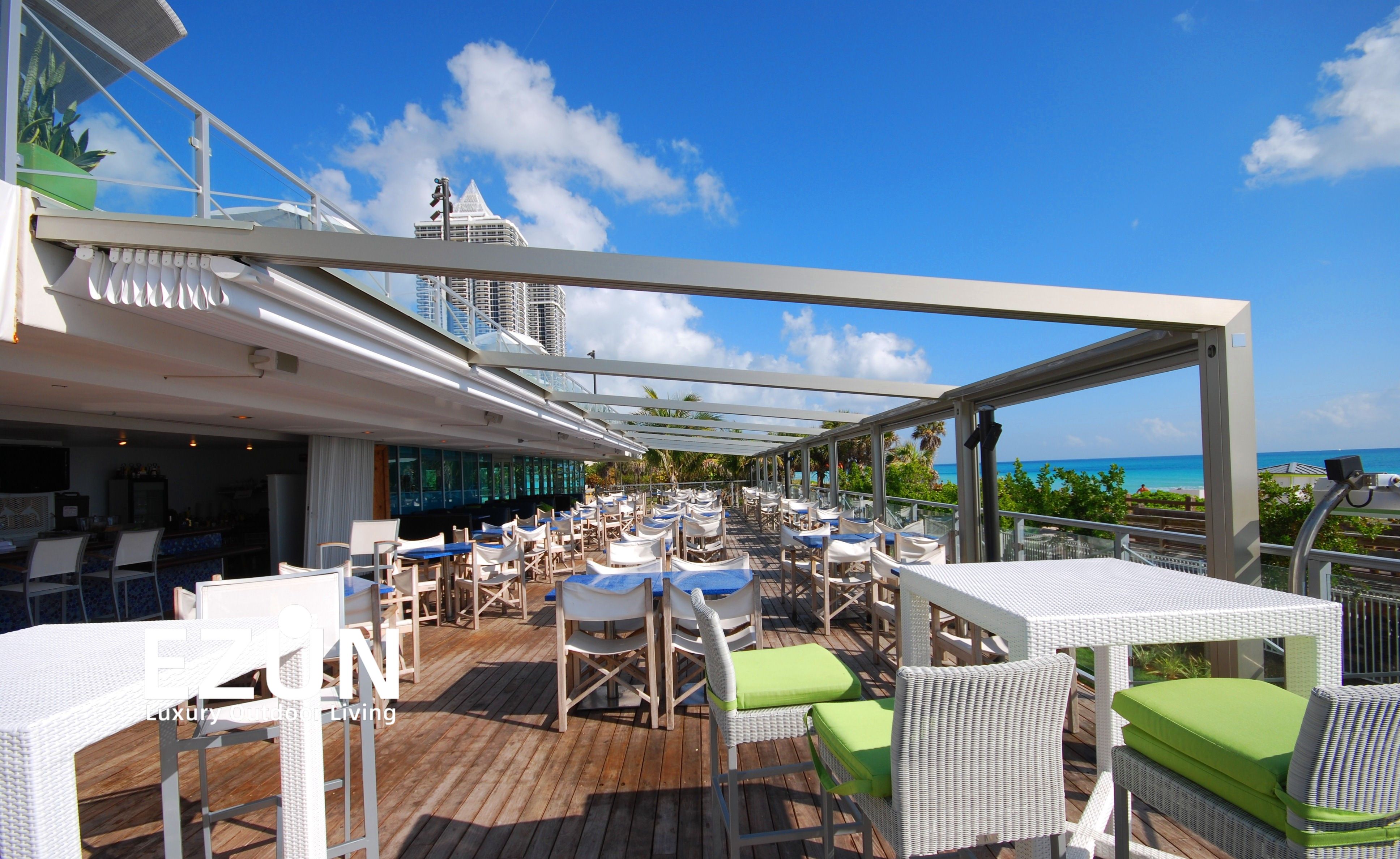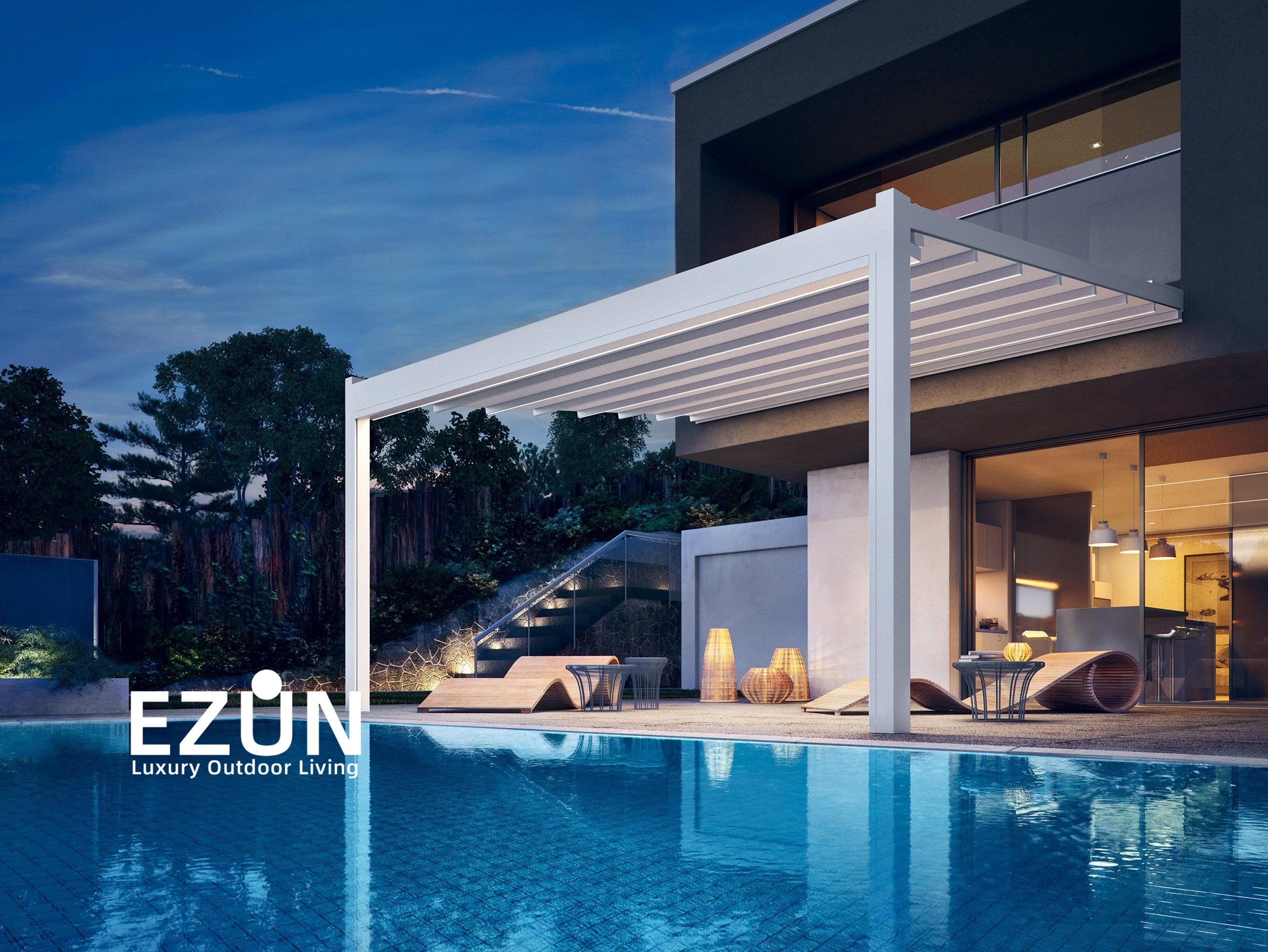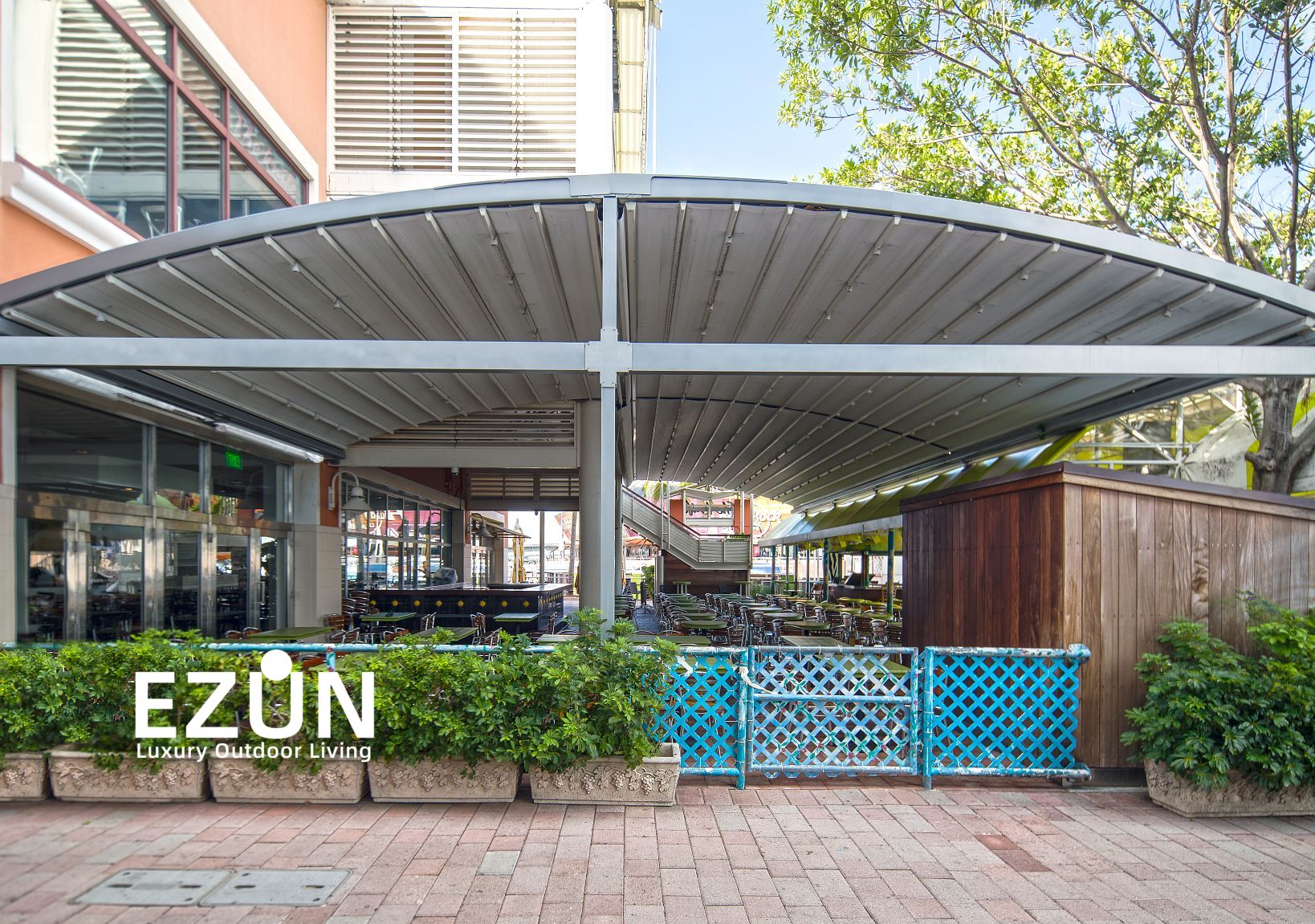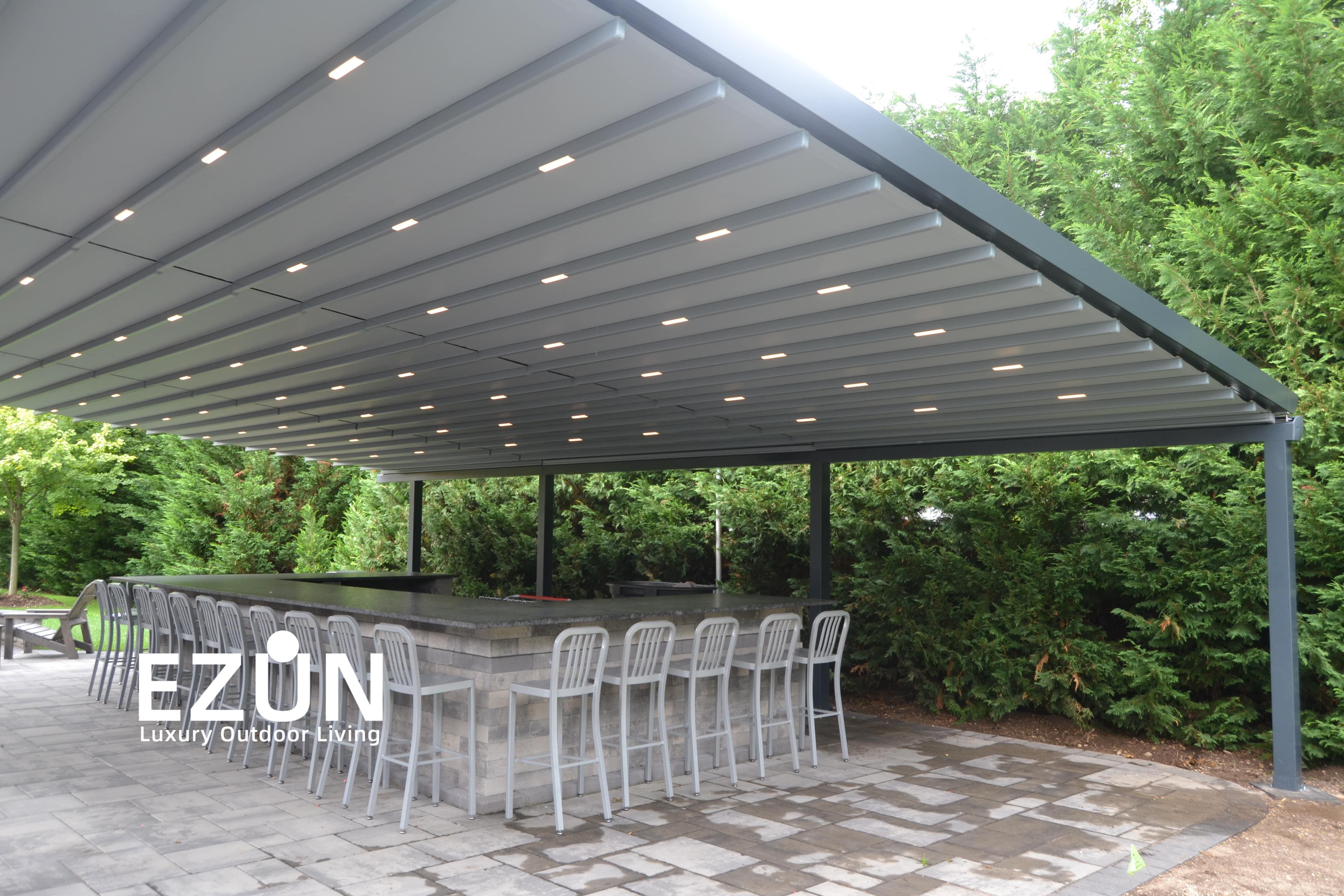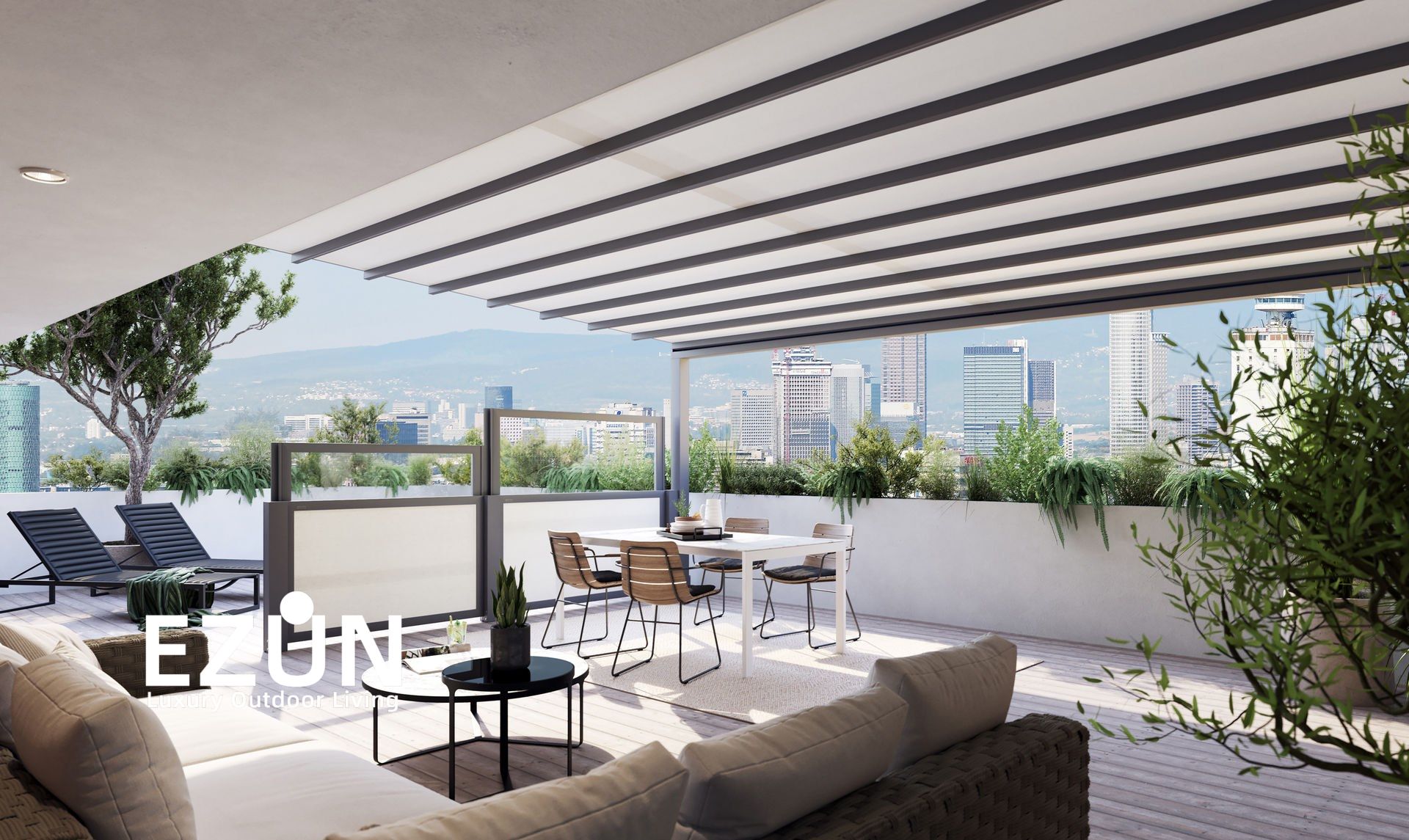 折叠天幕是一种最受青睐的户外空间拓展方案。布料通过特制的电机随铝制轨道伸缩移动,打开时可让客户感受大自然的阳光与空气,闭合后可以100%防水并抗风。轨道的设计可以延伸尺寸,大面积覆盖空间。