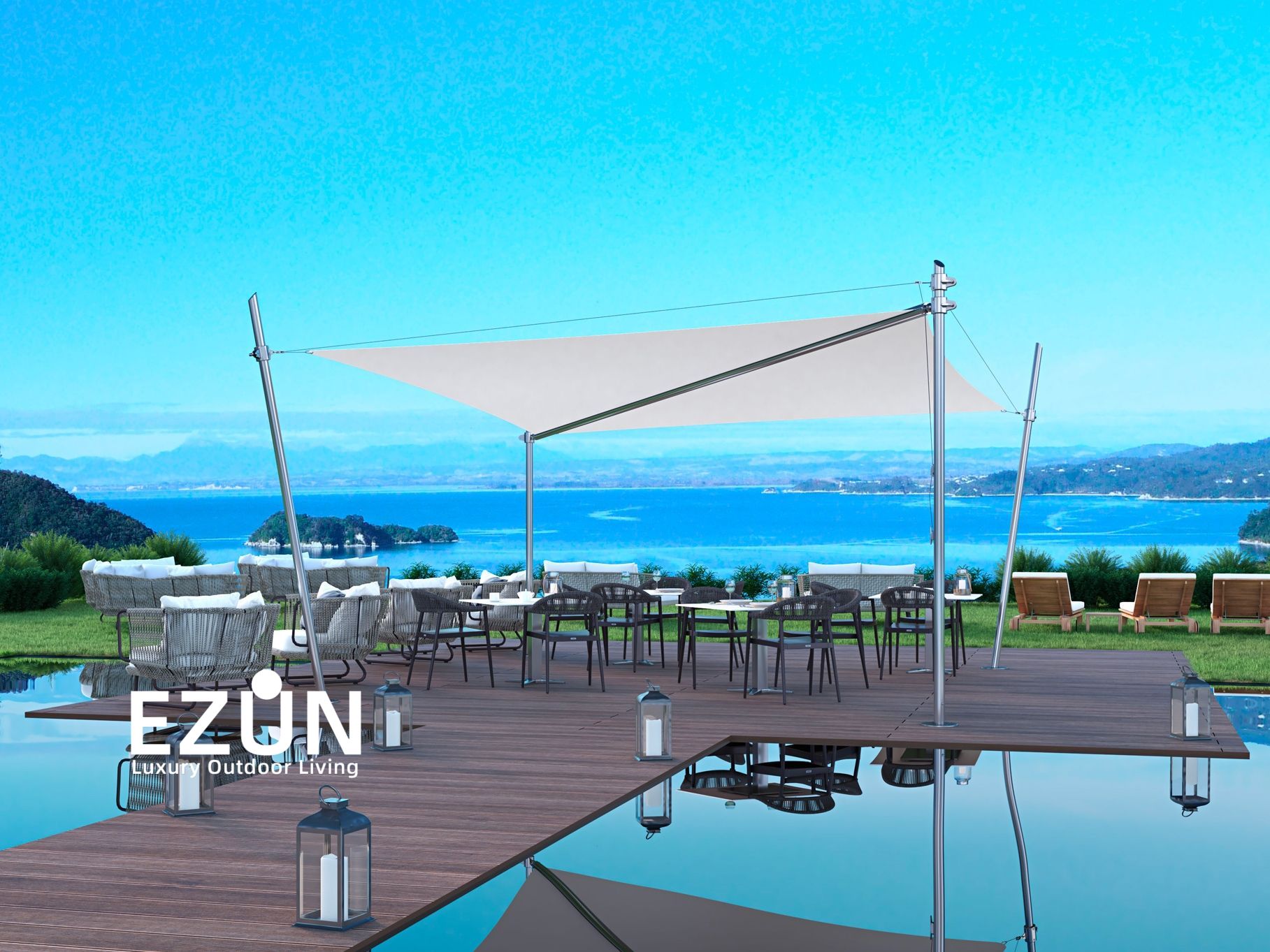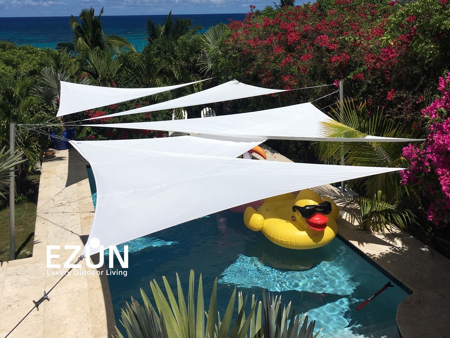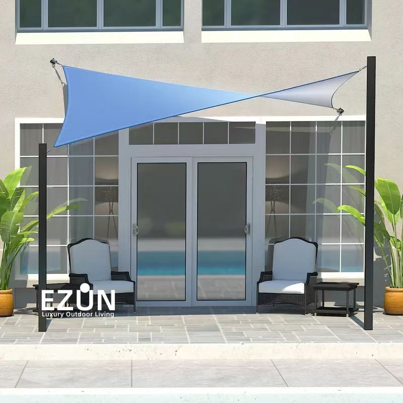 易尊遮阳帆是一种用于户外遮阳的设施,常用于露天空间、庭院、阳台、露台、游泳池等地方。它由柔软的防水材料制成,具有一定的拉伸性和耐候性。遮阳帆的安装通常需要固定在支撑结构上,如墙壁、柱子或支架上。