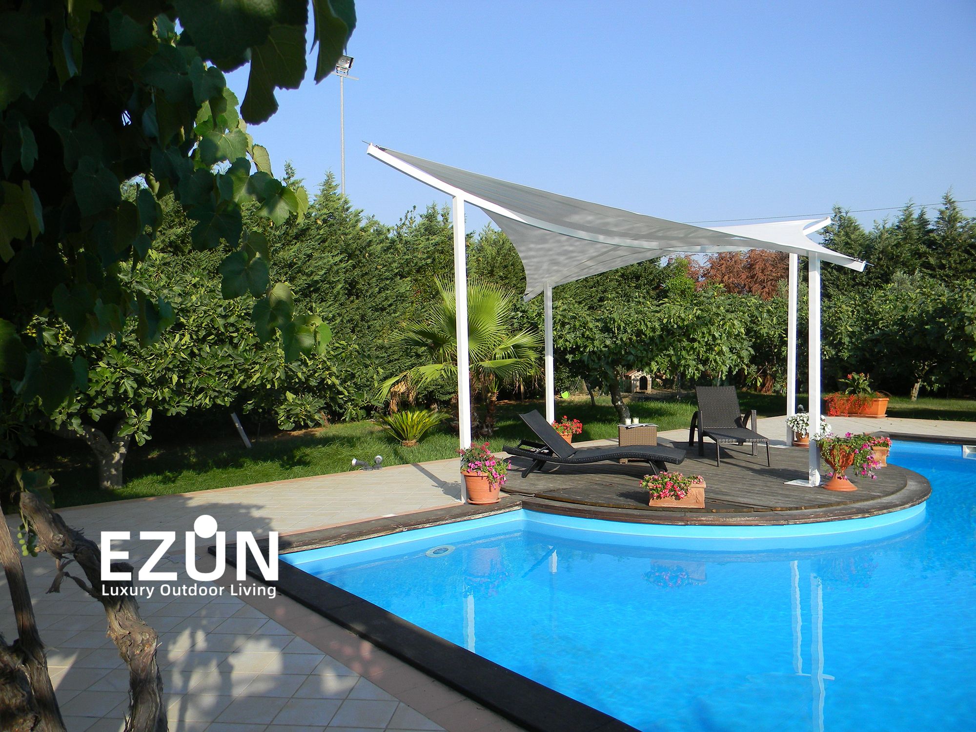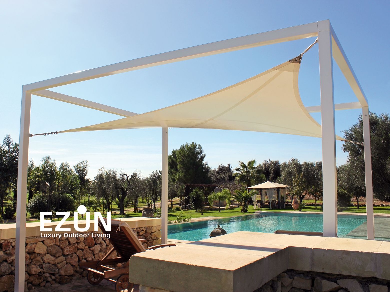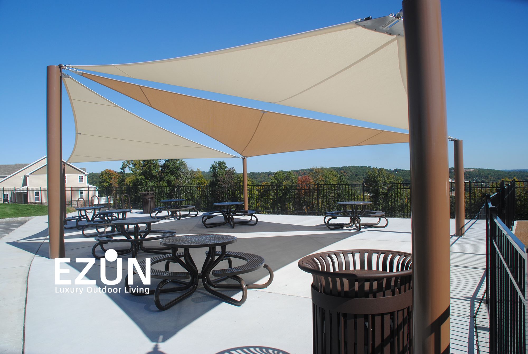 易尊遮阳帆是一种用于户外遮阳的设施,常用于露天空间、庭院、阳台、露台、游泳池等地方。它由柔软的防水材料制成,具有一定的拉伸性和耐候性。遮阳帆的安装通常需要固定在支撑结构上,如墙壁、柱子或支架上。